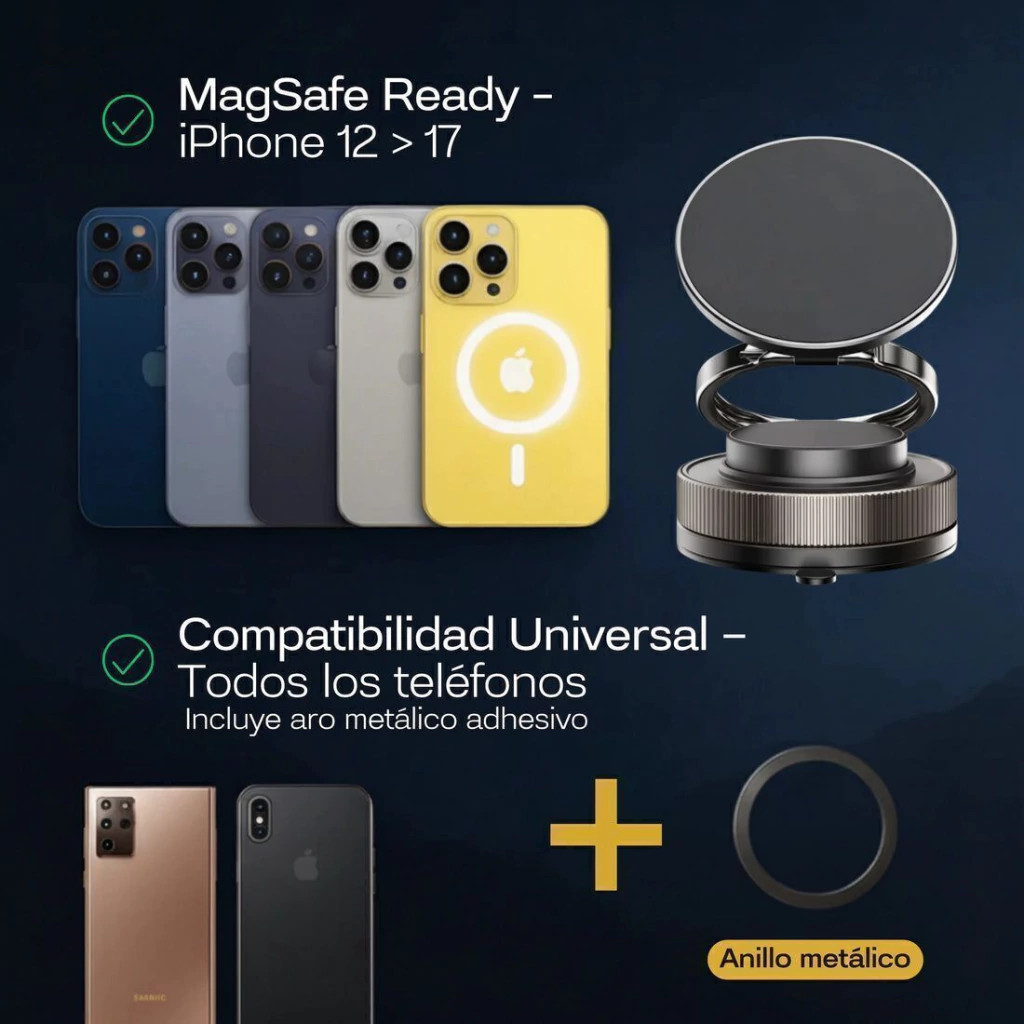 Incluye aro metálico adhesivo para todos los demás teléfonos → compatibilidad universal total.