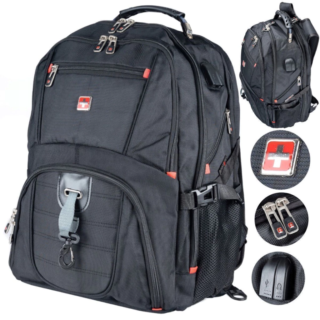 Incluye puerto USB externo para cargar tus dispositivos sin abrir la mochila, bolsillo anti-robo, correa para valija, y organización interna premium con espacio para laptop, tablet, cables, los lentes de tu camara y esa botella que nunca encontrás.