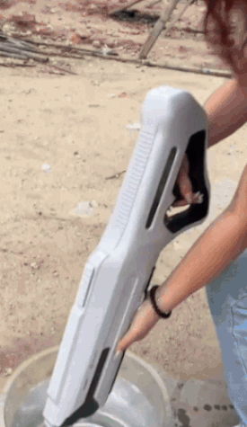 Uso ideal para exteriores — playa, piscina, jardín o patios — gracias a su alcance, potencia y facilidad de recarga, resulta una opción ideal para peleas de agua veraniegas, fiestas, tardes en la piscina o actividades al aire libre.