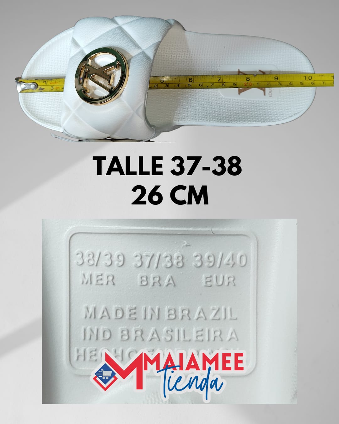 Confeccionadas en cuero eco premium y detalle acolchado, su diseño con logo dorado LV aporta un toque sofisticado y moderno. Perfectas para usar tanto en casa como en la ciudad — cómodas, livianas y con un estilo que nunca pasa desapercibido.