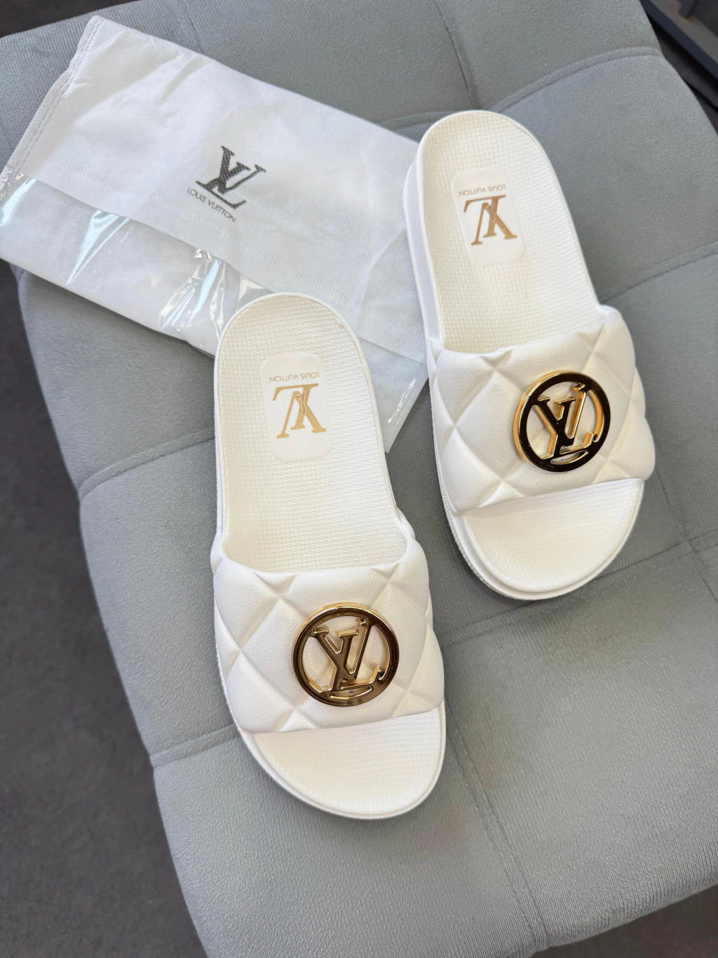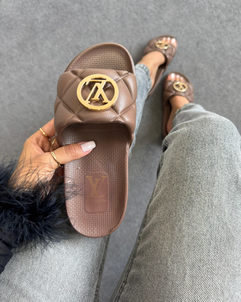Confeccionadas en cuero eco premium y detalle acolchado, su diseño con logo dorado LV aporta un toque sofisticado y moderno. Perfectas para usar tanto en casa como en la ciudad — cómodas, livianas y con un estilo que nunca pasa desapercibido.